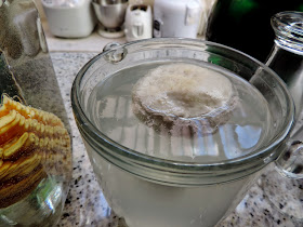 o mel, o sal e as folhas de manjericão. Despeje